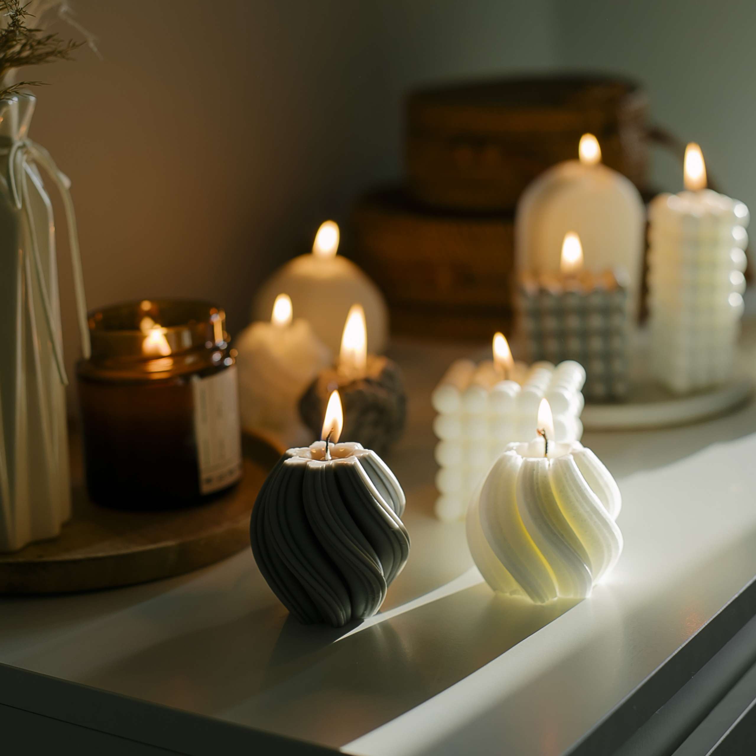 You can learn how we think about materials, shapes and colors, and how it is affecting the final result of your candle and interior decor making.
